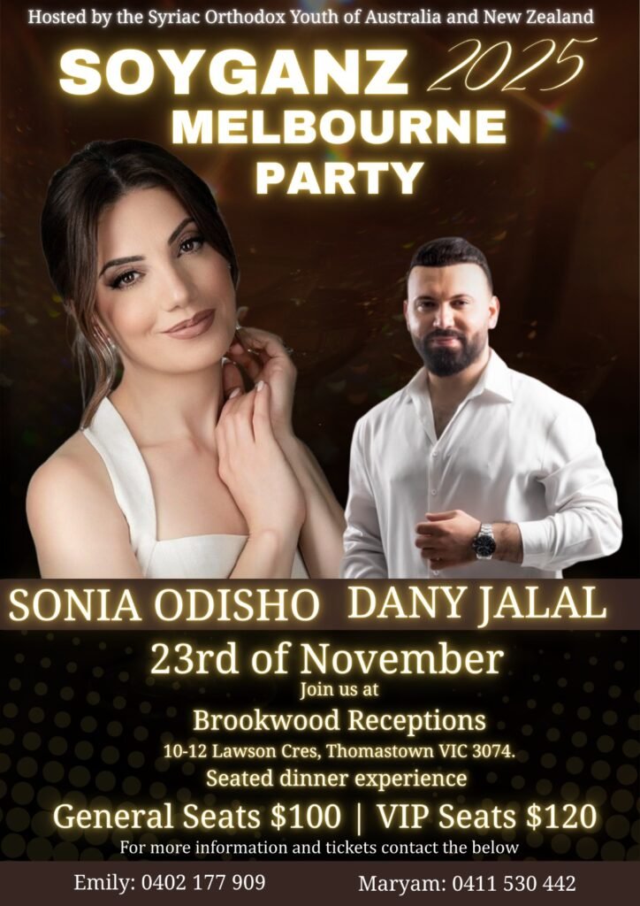 Join us for an unforgettable evening as the Syriac Orthodox community comes together for SOYGANZ Party 2025! This celebration is open to all families and ages, promising a vibrant night of music, culture, and connection.